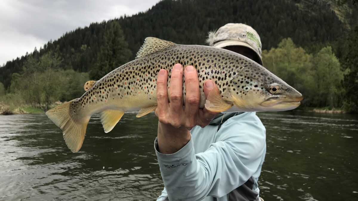 Stoneflies start to flush out of the tributaries right about now, and caddis and mayflies in the main stem Kootenai begin hatching prolifically. Water temperatures take a brief plunge with the addition of all the melted snow, which does affect trout activity levels. They don’t eat all day long, but when they eat, they chow.